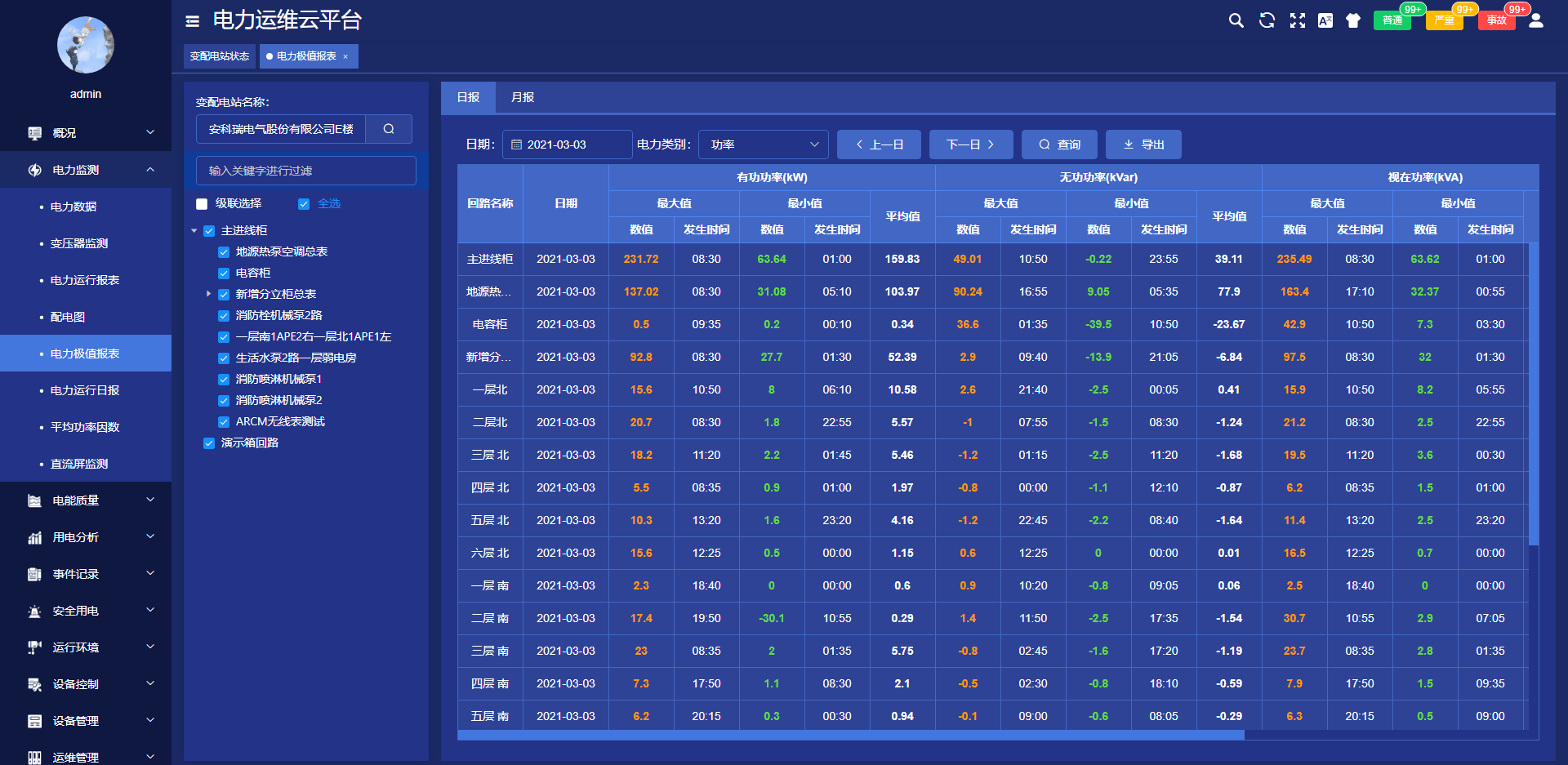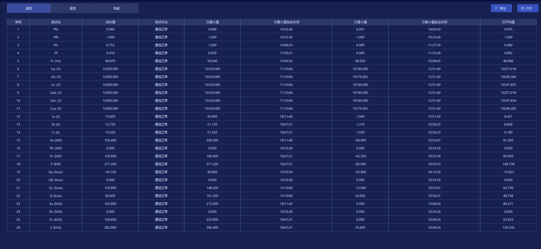数据可视化与多维度查询:支持电参量、温度、局放等数据的实时显示,可查询实时历史曲线,生成日、月、年运行报表、电能统计报表、开关次数统计报表,数据支持导出、打印;