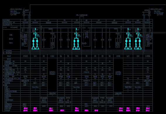 分配电室0.4kV开关柜:MNS低压配电柜共16面,其中低压进线柜4面,电容器柜8面,馈线柜4面。分配电室的12#变(13#变、14#变、15#变)的一次系统图如下。