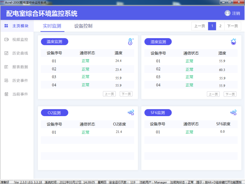 配电室综合监控系统具有实时告警功能,系统能够对配电室温度、湿度、有害气体、设备故障或通信故障等事件发出告警。