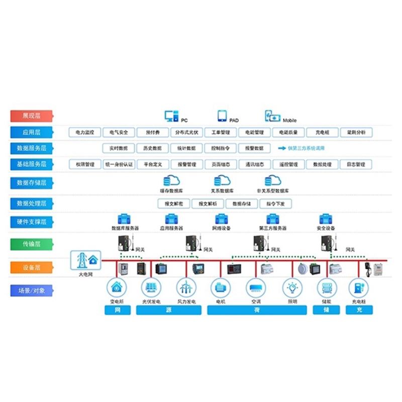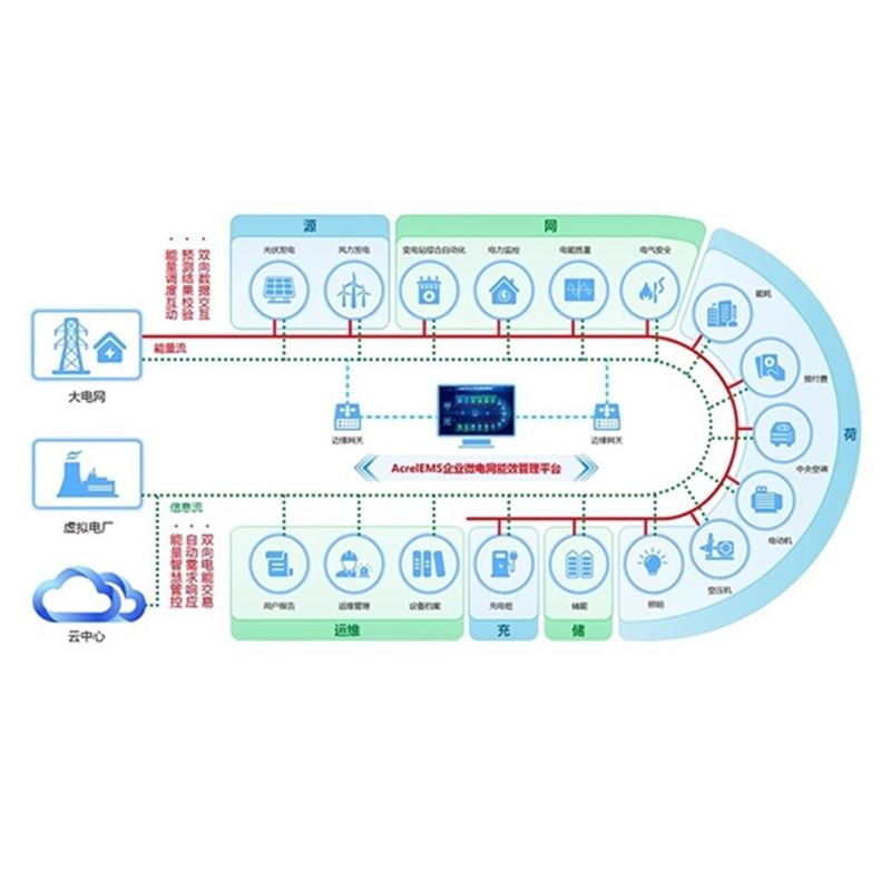 AcrelEMS企业微电网能效管理平台通过在源,网,荷,储,充的各个关键节点安装监测,分析,保护,治理装置,根据电网价格,用电负荷,电网调度指令等情况,调整各个系统控制策略并远程下发,使平台高效稳定运行,降低企业用电成本,实现能源互动,信息互通。